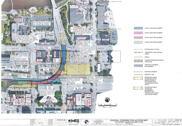 The 16th Street Viaduct Bridge intercepts 4th Avenue and 14th Street at street level and passes over existing streets and businesses to its connection with the Arsenal Island Bridge just north of River Drive. The bridge provides direct access for commuters wishing to travel between Arsenal Island and Moline. Weather, salt used in snow removal, vehicle use, and age have combined to result in deterioration of the bridge deck and the need for repairs.